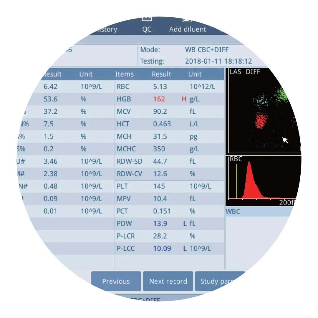 Minimum 30 μL of blood, complete the CBC+DIFF in one minute