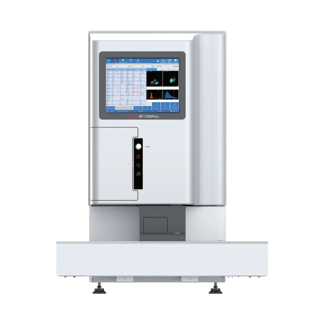 BF-7200 Plus adalah automatic hematology analysis system yang dirancang untuk laboratorium dengan volume pemeriksaan tinggi dan kebutuhan akurasi diagnostik maksimal. Dengan teknologi flow cytometry berbasis laser dan autoloader berkapasitas besar, BF-7200 Plus mampu memberikan hasil analisis diferensial WBC yang detail dan andal hingga 120 sampel per jam.