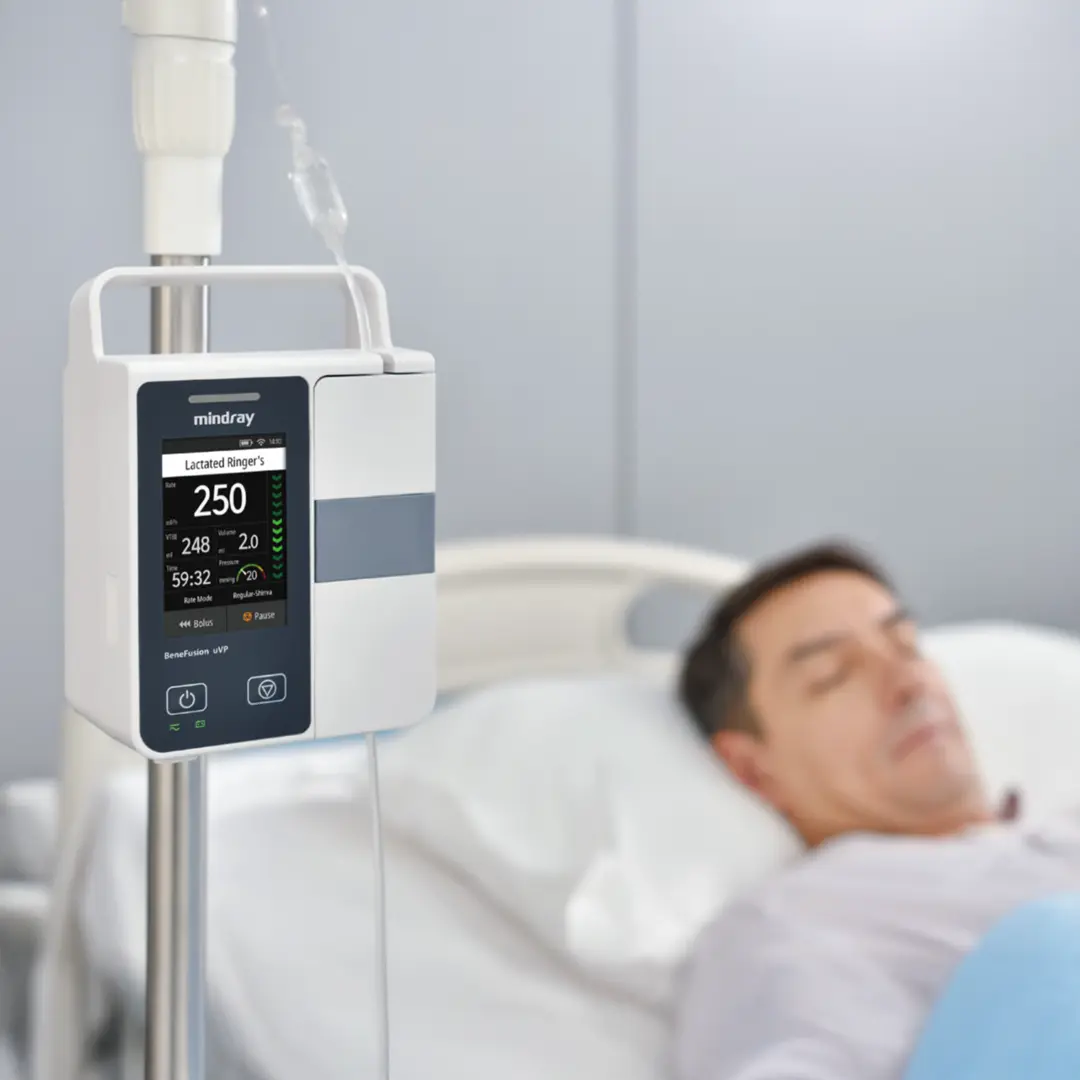 PMLS Infus Pump UVP adalah pompa infus multifungsi dengan layar sentuh 3,5 inci, 9 mode infus, drug library hingga 5000 obat, serta fitur keamanan canggih untuk infus obat, nutrisi enteral, dan transfusi darah.